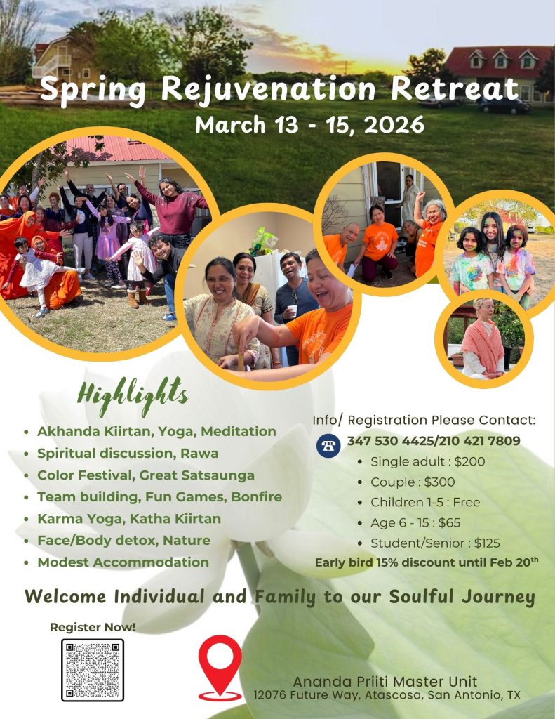 We warmly invite you and your family to join us for a joyful and uplifting Spring Rejuvenation Retreat—a weekend designed to refresh the body, calm the mind, and awaken the heart through spirituality, service, and community.